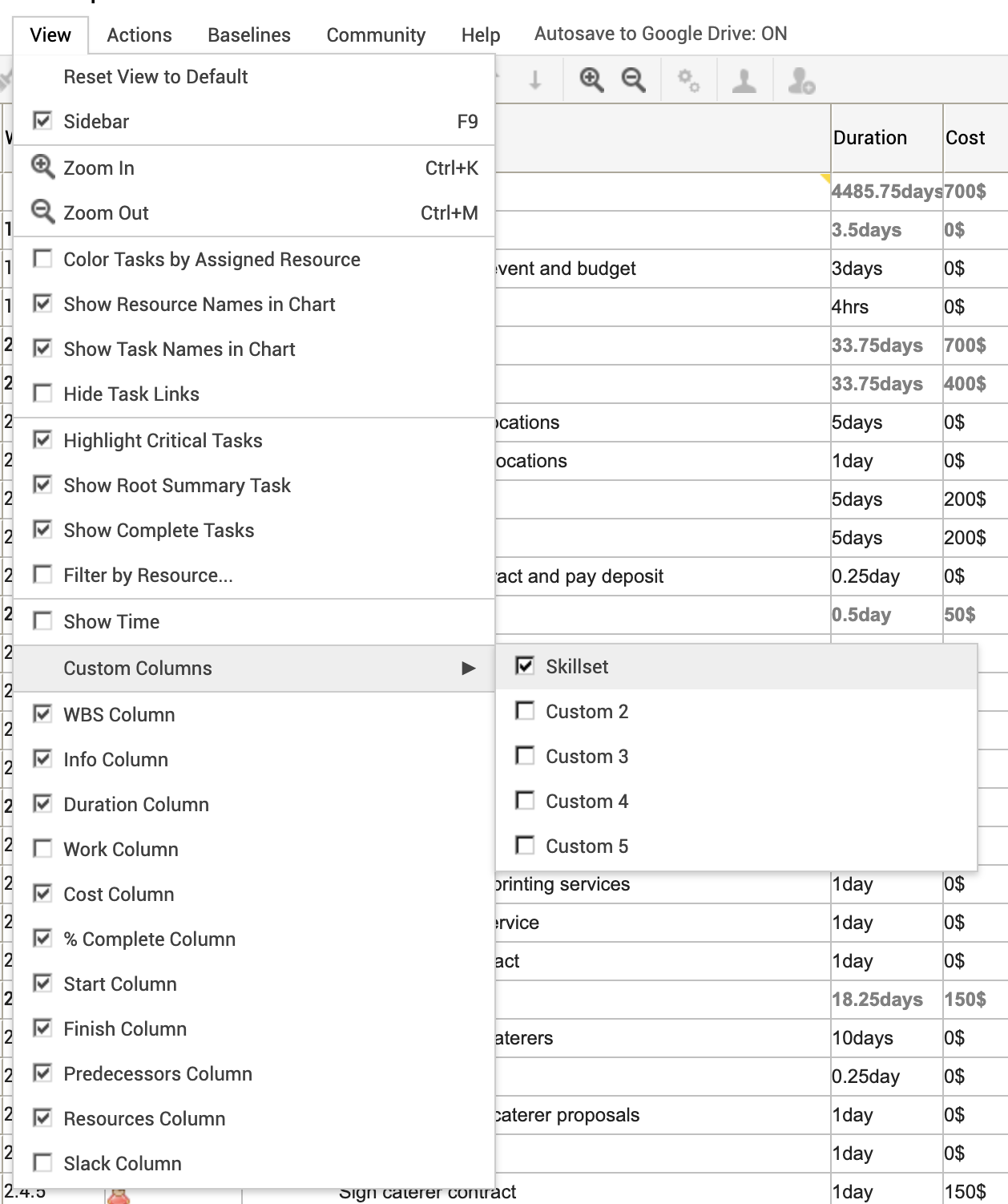 Then when you go to view menu and hover over custom columns you should see the name of the column you just made, here you can select it to display the column in your CPM.